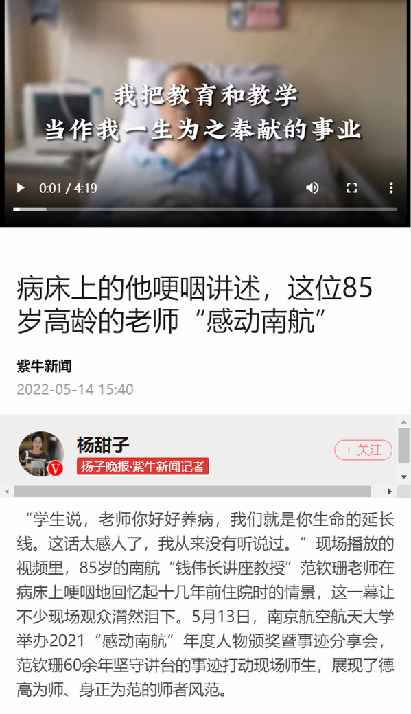 南京日报丨病床上的他哽咽讲述,这位85岁高龄的老师“感动ac米兰”