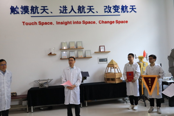 紧接着,陈金宝代表学院按下了70周年校庆标识的加载按钮,随着屏幕上进度条的滚动,校庆旗帜电子照片正式载入单元存储器。最后,季海群进行了总结发言,阐释了将该单元命名为“锦囊一号”的由来,并用“以囊为星,可见体积之小;以星为囊,可见格局之大”高度概括了该单元的意义,鼓励航天学院师生为母校生日作出贡献,以此单元的技术积累参加互联网+等高水平竞赛,加快推进包括航天馆在内的各项工作进度。