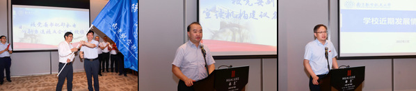 会上,党政办主任张启钱进行了校情通报,校党委副书记陶勇宣读了陕西校友会机构建议名单并向校友会负责人颁发聘书,郑永安同志向新任校友会会长授旗。
