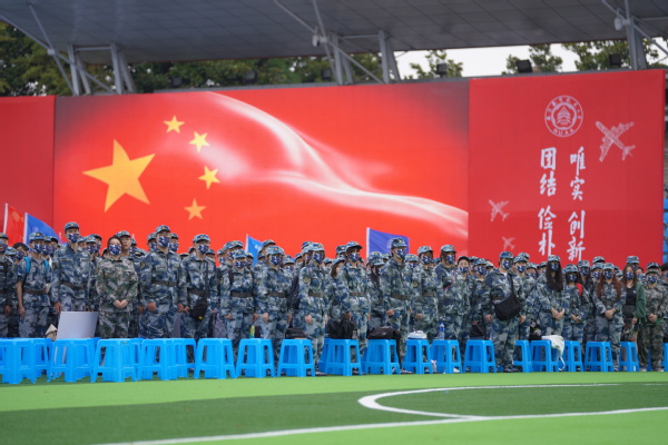 在慷慨激昂的中国人民解放军军歌旋律中,2022级本科生军训动员大会落下帷幕。