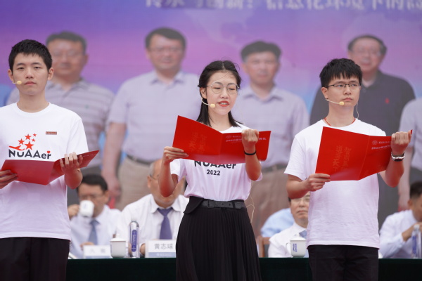 2022级研究生新生代表带来音诗画《光荣七十载 研途再出发》,他们讲述了建校七十周年来ac米兰人航空报国的薪火传承,服务国家的价值坚守和志在超越的奋斗精神,期待在研途新篇章上脚踏实地、潜心科研,为一流工科、卓越理科、精品文科建设贡献力量!