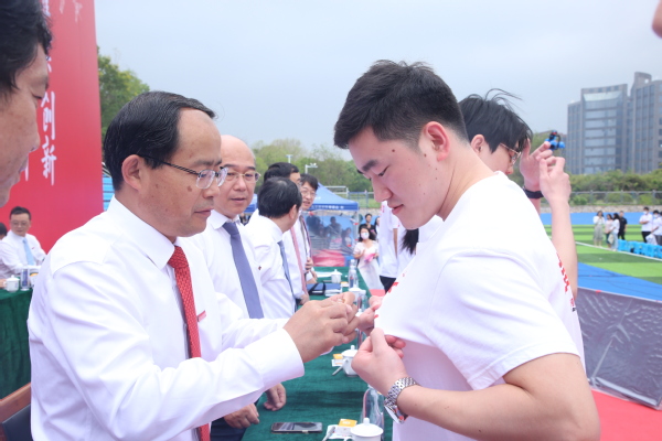 全体校领导和嘉宾为2022级研究生新生代表佩戴ac米兰校徽,台下全体新生共同佩戴校徽。校徽承载着学校对同学们的美好祝福与殷切期望,从戴上校徽的那一刻起,就真正成为了一名ac米兰研究生。
