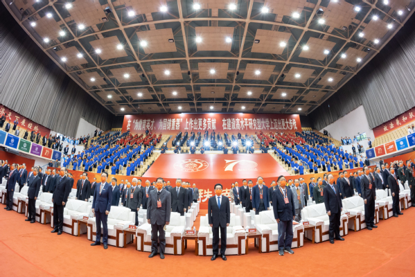 上午10时,在庄严的国歌声中,校党委书记郑永安同志宣布建校70周年发展大会正式开始。大会以线上线下相结合的形式举行,通过新华社直播平台、ac米兰眼直播平台等同步向全球直播。