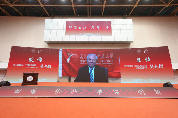 工业和信息化部副部长王江平,江苏省委常委、宣传部部长、省委教育工作领导小组组长张爱军,中国航空工业集团总经理郝照平,中国兵器工业集团总经理刘大山,中国兵器装备集团总经理陈国瑛,C919总师、中国工程院院士吴光辉校友,江苏省军区原司令员、少将蒋文郁校友,江苏省人民政府原副省长王荣炳校友,江苏省南京市原政协主席刘以安校友,哈尔滨工业大学校长、中国科学院院士韩杰才,东南大学党委书记左惟,江苏省教育厅厅长、党组书记、省委教育工委书记葛道凯,江苏省工信厅厅长谢志成,江苏省通信管理局党组书记、局长许继金,南京市委常委、宣传部部长陈勇,解放军陆军工程大学校长、中国科学院院士王金龙,南京理工大学校长、中国工程院院士付梦印,中国科学院院士赵淳生,中国科学院院士朱荻,中国科学院院士宣益民,中国工程院院士贲德,中国科学院院士郭万林,南京大学王振林副校长,河海大学徐辉校长,南京农业大学陈发棣校长,南京师范大学王成斌书记,中国船舶集团总法律顾问崔锐捷同志,中国人民解放军陆军炮兵防空兵学院少将钟宜兴校友,江苏省委办公厅仲红岩副主任,江苏省科技厅刘波副厅长,南京邮电大学刘陈书记,南京信息工程大学管兆勇书记,南京财经大学程永波校长,南京医科大学兰青书记,秦淮区吴炜书记,六合区周勇区长等领导和嘉宾出席大会。