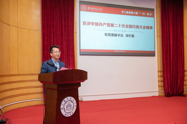 刘宇雷从学什么、怎么学、怎么干三个方面,就学工系统学习宣传贯彻党的二十大精神提出要求。他指出,一是要全面准确把握,深刻领会内涵,从党的二十大精神中汲取精神伟力。要从过去五年的工作和新时代十年的伟大变革,开辟马克思主义中国化时代化新境界,以中国式现代化推进中华民族伟大复兴的使命任务,教育、科技、人才三位一体统筹部署的战略意图,坚持党的全面领导和全面从严治党的重大部署等方面着重深刻领会大会精神,正确认识把握习近平新时代中国特色社会主义思想的精神实质。二是要掌握学习方法,抓好学习宣传,为党的二十大精神贯彻落实打下坚实基础。要坚持读原文、悟原理,在全面、系统、深入学习上下功夫;要坚持创新形式、丰富载体,在拓展学习广度深度上下功夫;要坚持宣传宣讲、研究阐释,在深入解读上下功夫,形成专家宣讲辅导、领导带头宣讲、辅导员主动宣讲、学生骨干参与宣讲的良好宣传宣讲氛围,为党的二十大精神贯彻落实打下坚实基础。三是要运用立场观点方法,坚持知行合一,把党的二十大精神转化为工作实践。要“坚持人民至上,坚持自信自立,坚持守正创新,坚持问题导向,坚持系统观念,坚持胸怀天下”,心怀“国之大者”,善谋“党之大计”,跳出学生工作看学生工作,放眼长远看学生工作,一步一个脚印把党的二十大作出的重大决策、校党委各项重要部署付诸于行动、见之于成效。