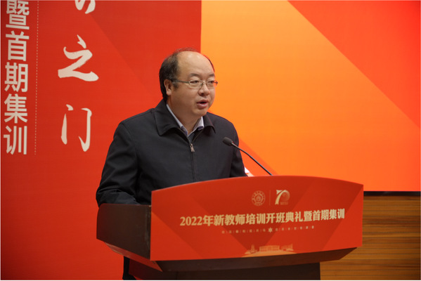 11月18日上午,ac米兰2022年新教师培训开班典礼在将军路校区一号楼四楼报告厅举行。校长单忠德院士,副校长施大宁,党委常委、宣传部/教师工作部部长王晖,相关部门负责同志以及各学院领导,ac米兰青年教师特聘导师,2021年校本培训优秀学员以及2022年新入职教师和机关管理人员共280余人参加了活动。