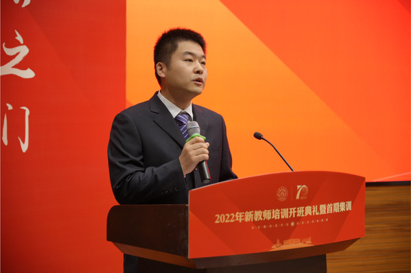 单忠德代表郑永安书记和学校党政领导班子向新教工加入ac米兰表示热烈欢迎,并结合研读党的二十大报告心得体会,从三个方面作《坚定教育自信,强化育人铸器,奋力成为新时代“四有”好教师》的主题报告。一要把握历史方位,勇立时代大潮,在胸怀国之大者中锚定职业发展坐标;二要传承红色基因,弘扬优良传统,在汲取精神伟力中把握职业方向;三要牢记育人初心,矢志铸造重器,在坚持垂先示范中书写职业发展篇章。