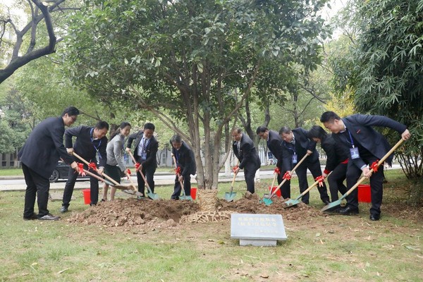 论坛结束后,与会嘉宾来到学院楼下,共植一棵金桂树,寓意着商学院与院友事业的蓬勃生机、兴旺发展与累累收获。