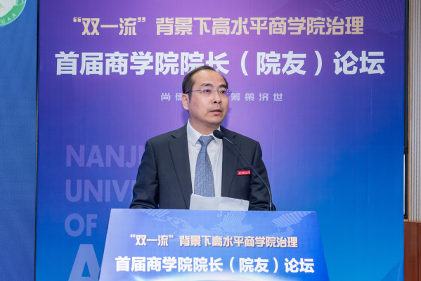 苏州代表学院致辞,简要回顾了经管学院发展历程和办学成就,向广大校友长期以来关心支持学院发展表示衷心感谢。他表示,校友和母校母院不仅是情感共同体、更是发展共同体。学院培养的学界精英中已走出了数十位国内经济与管理学院的院长、副院长,为院长校友们搭建一个可持续的交流平台,启发思路、借鉴经验、共享资源、互助发展,是学院发起首届商学院院长(院友)论坛的初心和使命;“双一流”背景下,大学治理、学院治理都已进入一个新的时期,对于学院治理,经济管理学院应该有更强烈的主体意识,应该比其他学院有更多的思考和实践,共同为中国式现代化不断贡献商学院智慧和经管方案。