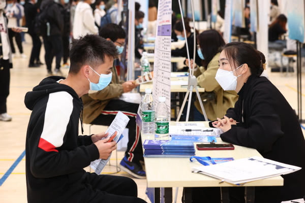 招聘现场严格落实疫情防控政策,实施扫码入场,全体人员佩戴口罩,井然有序。现场吸引了近500名学生分批入场参会,同学们积极与用人单位代表交流,踊跃投递简历,部分毕业生现场达成了初步就业意向。招聘会现场,刘宇雷密切关注招聘会开展情况,详细了解用人单位招聘需求,与各学院党委副书记、毕业班辅导员深入交流,了解学生就业情况,强调要做好疫情防控常态化的稳就业工作,为2023届毕业生顺利就业、尽早就业做好充分保障。