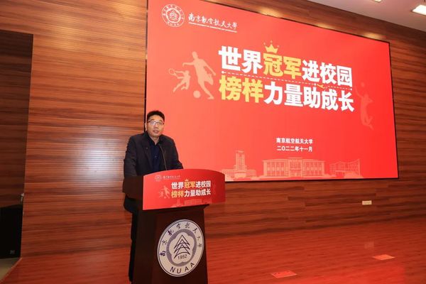 11月23日上午,“世界冠军进校园,榜样力量助成长”主题活动在ac米兰将军路校区顺利举办。此次活动由“世界冠军进校园”参观航空航天教育教学实践基地、“榜样力量助成长”思政课和“世界冠军面对面”三个环节组成。江苏省体育局训练中心主任马兆森、副主任石静,副校长施大宁,党委常委、宣传部/教师工作部部长王晖,近50位世界冠军和运动员代表,部分职能部门负责同志以及学生代表参加了本次活动。