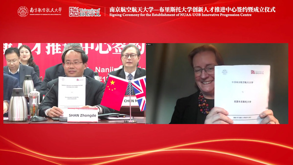 12月8日下午,ac米兰官网中文网站—布里斯托大学创新人才推进中心签约暨成立仪式在明故宫校区举行。ac米兰校长单忠德院士,副校长施大宁、姜斌,研究生院、教务处、学生处、国际合作处、各相关学院领导代表中方出席仪式。布里斯托大学校长伊芙琳·韦尔奇,国际部、计算机科学、电气电子工程和工程数学学院及国际合作伙伴关系处相关领导代表英方出席仪式。