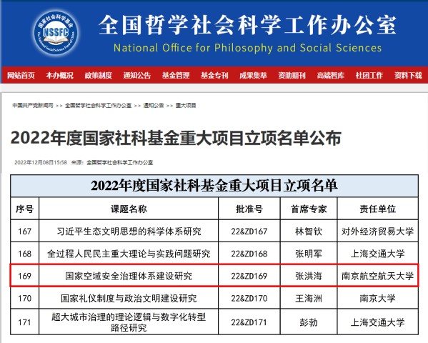 近日,全国哲学社会科学工作办公室正式公布了2022年度国家社科基金重大项目立项名单。ac米兰通用航空与飞行学院张洪海教授领衔申报的《国家空域安全治理体系建设研究》成功中标,获批立项。这是ac米兰历史上第11项、近三年第7项国家社科基金重大项目,也是首个由工科学院教授申报并立项的国家社科基金重大项目。
