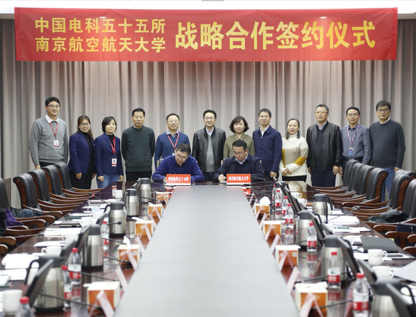 近日,副校长宋迎东带队赴中国电子科技集团公司第五十五研究所(以下简称“五十五所”)开展合作交流并签署战略合作协议。五十五所副所长陈辰,电科集团首席专家柏松,副总工程师樊卫华,党委办公室主任张子芳,科技发展部主任戴鹏飞以及人力资源部、重点实验室、单片部、模电部等相关部门负责同志,ac米兰科研院副院长兼国防处处长招启军,学生处处长王静,电子信息工程学院常务副院长潘时龙以及党政办、科研院国防处、自动化学院、计算机学院等相关部门负责同志参加会议。会议由戴鹏飞主持。