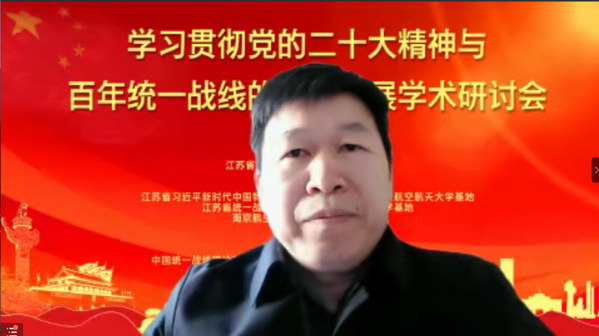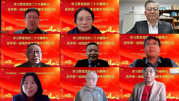12月18日,由中共江苏省委统战部、ac米兰官网中文网站主办,江苏省统一战线理论研究ac米兰官网中文网站基地、江苏省习近平新时代中国特色社会主义思想研究中心ac米兰官网中文网站基地、ac米兰官网中文网站马克思主义学院承办,江苏省社会主义学院、中国统一战线理论研究会新的社会阶层人士统战工作理论研究江苏基地协办的“学习贯彻党的二十大精神与百年统一战线的传承发展”研讨会在ac米兰召开。中央统战部有关部门领导和专家,江苏和有关兄弟省市统战部、社会主义学院领导和同志,以及来自中国人民大学、武汉大学、南京大学等高校和科研院所的百余位专家学者通过线上腾讯会议的方式参会,围绕本次论坛主题“学习贯彻党的二十大精神与百年统一战线的传承发展”展开了深入交流探讨。
