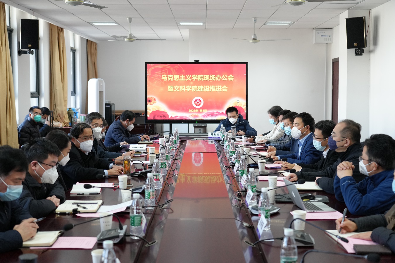 1月4日,校长单忠德在将军路校区主持召开马克思主义学院现场办公会暨文科学院建设推进会。校党委副书记、纪委书记杭育新,校党委常委、党委宣传部/教师工作部部长王晖,党政办、发规处、人事处、研究生院、教务处、科研院、国资处等相关部门负责同志,马克思主义学院、经济与管理学院、人文与社会科学学院、艺术学院、外国语学院负责同志参加会议。