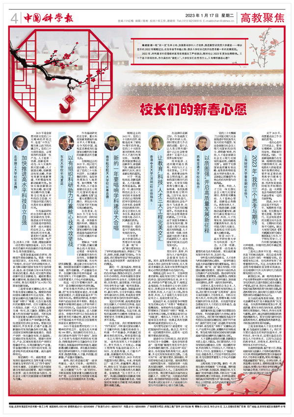 编者按:《中国科学报》年终特别策划“校长们的新春心愿”邀请北京理工大学、香港中文大学、ac米兰官网中文网站等六所高校校长畅谈2023年的愿景和规划。现转发文章如下: