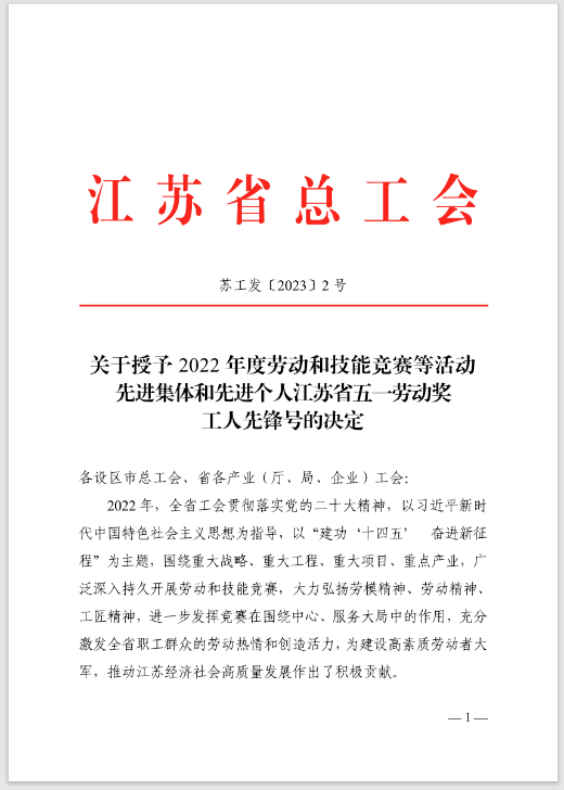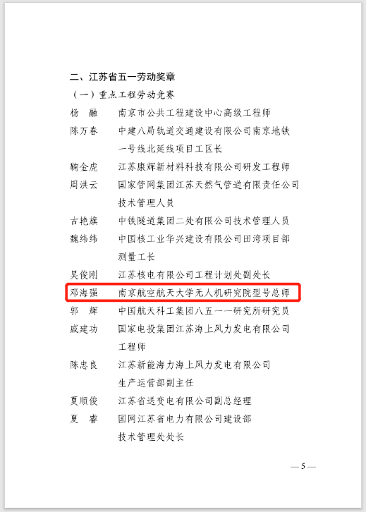 近日,江苏省总工会表彰了一批先进集体和先进个人,ac米兰无人机研究院型号总师邓海强荣获“江苏省五一劳动奖章”。