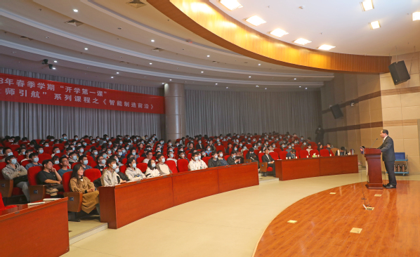 3月7日,校长单忠德在将军路校区以“智能制造赋能新型工业化加快推动制造强国建设”为题,讲授2023年春季学期“开学第一课”暨“强国逐梦·大师引航”系列课程之《智能制造前沿》。来自各学院的400余名学生现场聆听了此次课程。