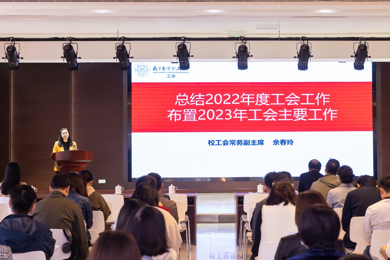 首先,余春玲代表校工会委员会对2022年工会工作进行了总结回顾,从全面学习贯彻党的二十大精神,坚持不懈用习近平新时代中国特色社会主义思想凝心聚魂;加强民主管理,汇聚学校发展合力;围绕中心工作,促进教职工岗位建功;竭诚服务教职工,提升工会服务质效;加强工会自身建设,增强工会组织的生机和活力等五个方面对2023年工会工作进行了部署。