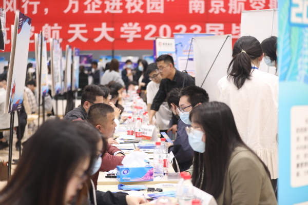 经过前期就业摸底调研,本次招聘会邀请到国防科技工业领域科研院所、央企、国企、重点领域高新技术企业参会,其中包括国防单位近百家。同时邀请了南京、芜湖、盐城等5个地区人社部门组织优质企业组团参会。303家参会用人单位为毕业生提供涵盖不同学历层次、不同专业的近万个就业岗位。会场入口处显示屏详细展示参会单位的规模、地域、行业分布等,并实时更新参会学生入场情况。