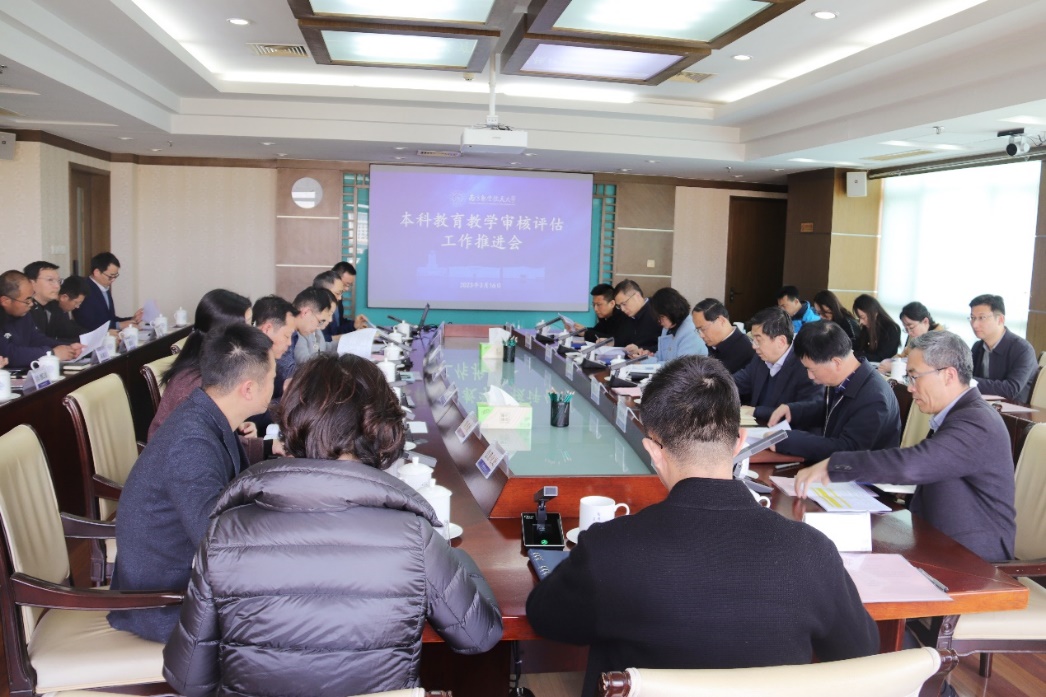 单忠德强调,全校上下要高度重视本次教育教学审核评估工作,以此次审核评估为契机,健全完善本科教育教学质量保障体系,培养德智体美劳全面发展的社会主义建设者和接班人。一是要提高政治站位,深刻认识新一轮审核评估的重要意义,严格按照“以评促建、以评促改、以评促管、以评促强”的要求,扛牢主责主业,以高度的责任感和使命感扎扎实实做好日常教育教学工作,认真组织材料撰写,强化过程审核把关;二是要突出特色优势,扎实做好新一轮审核评估的评建工作,对照新一轮审核评估的指标体系,紧盯教育教学中的薄弱环节,及时查缺补漏、系统整改提升,全面总结近年来本科教育教学方面取得的显著成果,提炼形成一批可推广可复制的典型经验和创新做法,为促进教育教学改革发展赋能助力;三是要强化作风建设,全力营造风清气正的良好环境,坚持以师生为中心,弘扬奉献牺牲精神,严明纪律规矩,完善教育教学管理机制,层层传递压力,为广大教师用心教书、潜心育人创造良好环境,以更高的站位、更大的格局、更强的本领扎扎实实推动学校教育教学质量再上新台阶。