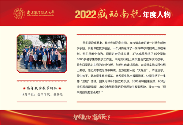 2022“感动ac米兰”年度人物 ⑤丨高等数学教学团队:架好创新人才培养的“凌云梯”,筑牢基础教学的“生命线”!