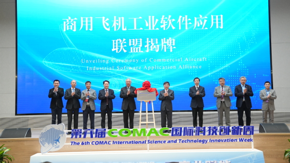 开幕式上,施大宁与其他嘉宾共同为“商用飞机工业软件应用联盟”揭牌。