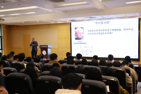 管晓宏院士从艺术与科学的相互影响、音乐旋律三大特征、音乐的数学模型三个部分探讨了音乐与科学之间的关系。他指出,该研究结果有助于深度分析音乐中的计算智能,探索人工智能辅助作曲和音乐脑科学认知的量化方法,促进艺术形象思维和科学逻辑思维的相互启迪。随后,管晓宏院士为现场师生播放了“艺术与科学的交汇”系列音乐会片段。报告现场氛围热烈,管晓宏院士详细回答了学生们的提问,并和部分参会师生进行了合影留念。