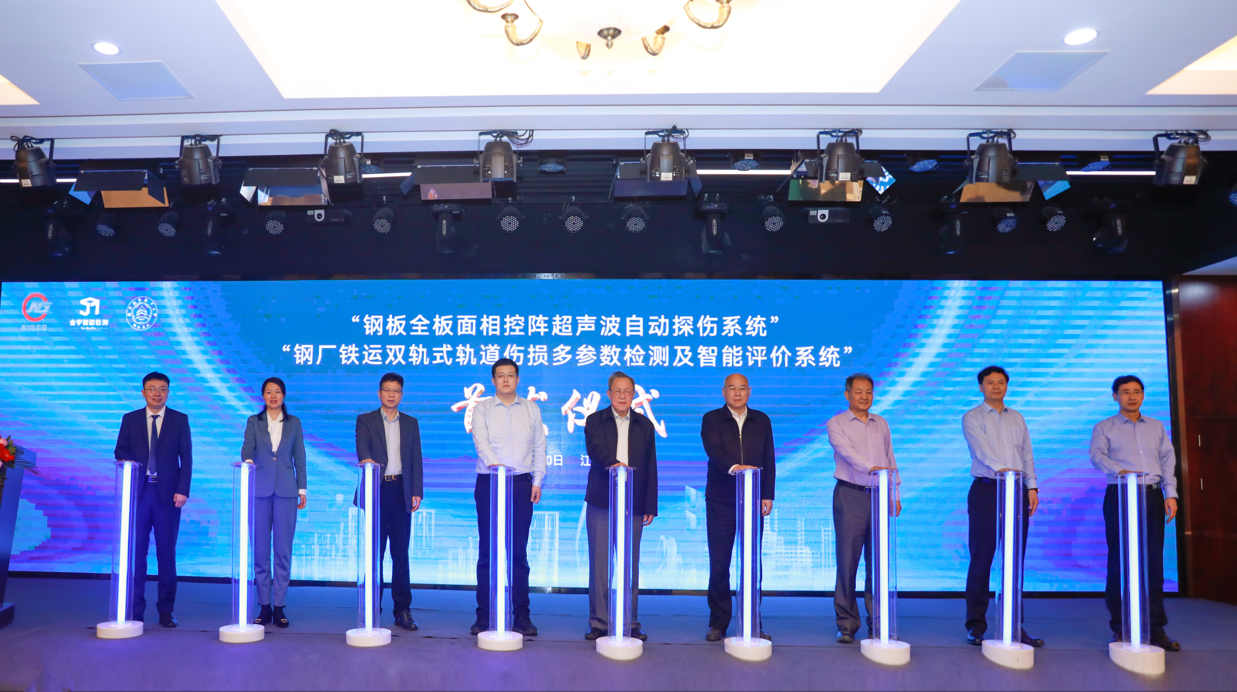 会上举行了“钢板全板面相控阵超声波自动探伤系统”“钢厂铁运双轨式轨道伤损多参数检测及智能评价系统”产品首发仪式。