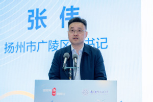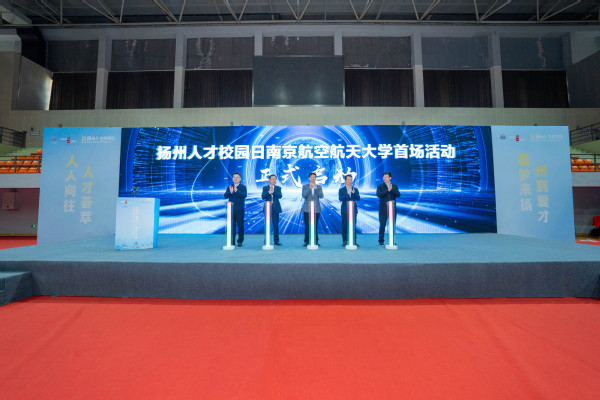 郑永安、焦庆标、刘宇雷、余珽、张伟共同启动扬州人才校园日首场活动。
