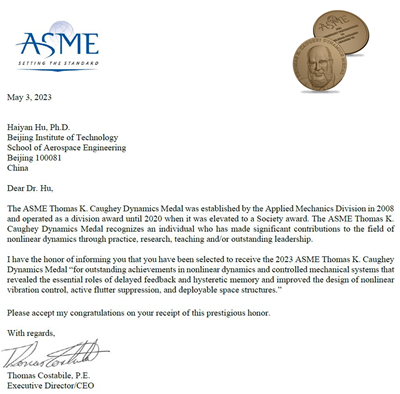 近日,美国机械工程师学会(ASME)宣布,中国科学院院士、ac米兰原校长胡海岩荣获2023年度ASME托马斯·考伊动力学奖(ASME Thomas Caughey Dynamics Medal),以表彰其在受控机械系统的非线性动力学领域取得突出成就,揭示了时滞反馈和迟滞记忆的基本作用,改进了非线性振动控制、颤振抑制、可展开空间结构的设计。