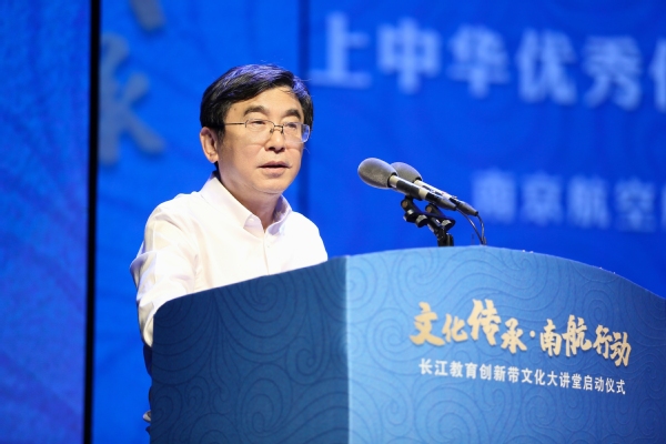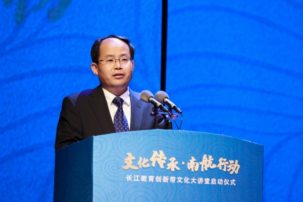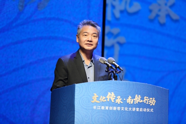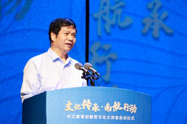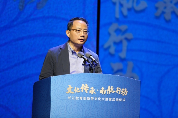 单忠德在主持时表示,创办“长江教育创新带文化大讲堂”是深入推进学习贯彻习近平新时代中国特色社会主义思想主题教育的重要举措,是贯彻落实习近平总书记在文化传承发展座谈会上重要讲话精神的生动实践,是加强新时代高校思想政治教育的创新之举。他指出,要坚持以习近平新时代中国特色社会主义思想为指导,全面贯彻党的教育方针,落实立德树人根本任务,紧密结合学习贯彻习近平新时代中国特色社会主义思想主题教育,进一步引导广大师生增强文化自觉,坚定文化自信,感知历史、启迪心智、丰富精神世界,在生动多元的文化熏陶中获得精神滋养,传承发展好中华优秀传统文化,推动中华优秀传统文化创造性转化、创新性发展,更好担负起新的文化使命,为扎实推进中华民族现代文明和社会主义文化强国建设贡献更大的智慧和力量。