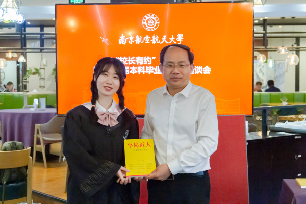 能源与动力学院毕业生叶宇林代表2023届本科毕业生大学成就奖及提名奖获奖学生向学校赠送毕业纪念册,表达了同学们对母校的真挚祝福。单忠德为在场每位毕业生代表赠书《平易近人——习近平的语言力量》,祝愿毕业生们前程似锦、大展宏图。