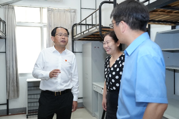 “每天有多少师生就医?”“住宿条件满不满意?有哪些需要改进?”在校医院、食堂、学生公寓、水电与维修服务中心等地,单忠德看望慰问了值班医生、后勤工作人员等并亲切交流,并代表郑永安书记和学校党政领导班子向大家的辛勤付出表示感谢,叮嘱大家要合理安排暑期时间,注意劳逸结合,做好饮食卫生安全。他详细了解了师生就医、食堂卫生、公寓条件等方面情况,强调要切实做好暑假期间的值班值守、后勤保障等工作,不断强化安全意识,时刻把师生的安全健康放在心上,不折不扣落实好各项管理制度,真正地把措施执行到位,全力守护好广大师生的生命安全和身体健康。他要求,各相关部门要切实扛牢安全责任,严格要求、严格落实,做好暑假期间生产安全、实验室安全、网络安全、保密、意识形态等工作,为全校师生学习工作生活提供安全的校园环境和优质的服务保障。