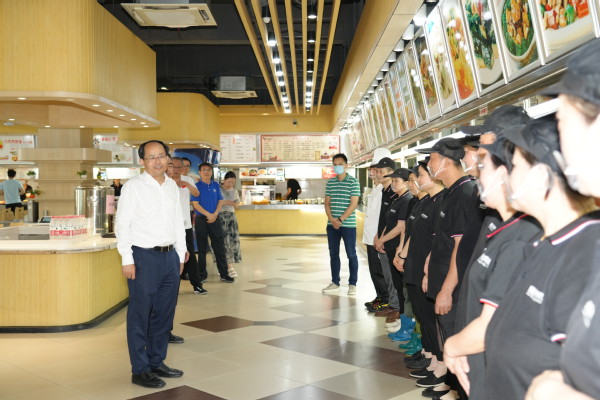 “感谢您们的默默奉献,大家辛苦啦!”单忠德先后来到明故宫校区西大门、车队、食堂、学生公寓、教育超市等地,每到一处都与暑期倾情奉献的教职员工深入交流,详细了解他们的工作生活情况,询问大家对学校的意见建议。他向大家为校园安全稳定和有序运转付出的辛勤汗水表示衷心感谢,并表示,后勤保卫肩负着校园安全稳定的关键职能,任务重大、责任重大,希望大家时刻紧绷安全这根弦,继续做好校园保卫、校区通勤、饮食服务、住宿保障等方面工作,为学校高质量发展营造和谐稳定、平安有序的校园环境。他叮嘱大家近期天气炎热,做好防暑降温,合理安排时间,注重劳逸结合,度过一个平安健康、幸福愉快的假期。