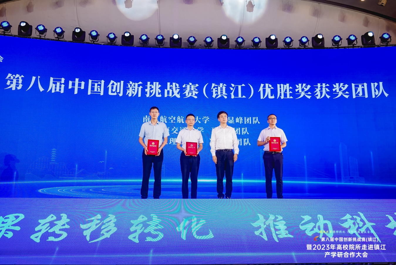 在颁奖仪式环节,ac米兰王显峰团队被授予第八届中国创新挑战赛(镇江)优胜奖。第八届中国创新挑战赛(镇江)现场赛于当天上午举行,由“卡脖子”技术难题发榜企业与相关领域专家,对来自全国高校院所的解决方案进行遴选,评选出优胜奖3名、优秀奖6名。在签约仪式上,ac米兰王显峰团队与江苏恒神股份有限公司签署关键技术开发合作协议;ac米兰安鲁陵团队与菲舍尔航空部件(镇江)有限公司签署联合攻关产学研项目合作协议。