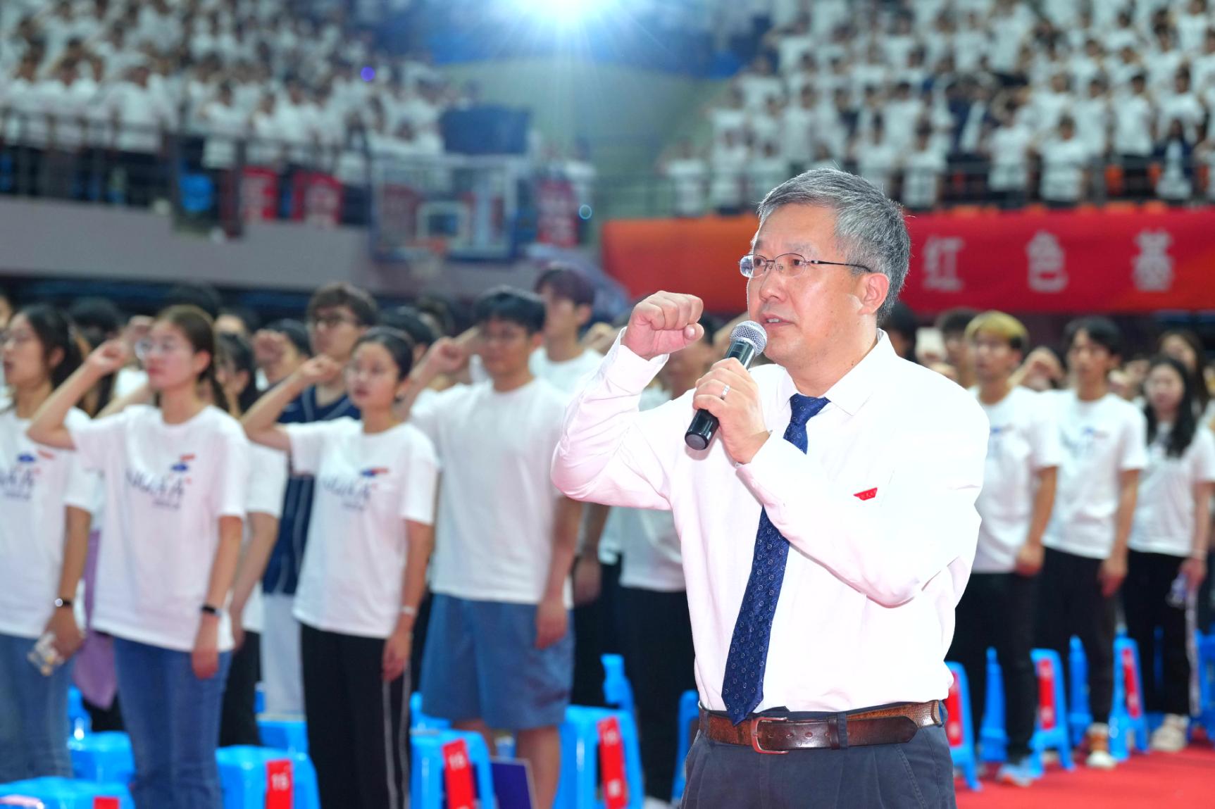 他寄语研究生新同学要始终牢记习近平总书记的重要勉励精神和殷殷重托,坚持“一辈子办成一件事”的执着,握紧接力棒,奋斗新征程,在推进新型工业化,加快建设科技强国、人才强国、制造强国、网络强国的征程中挑大梁、走在前。一是要厚植爱国之情,以志在长空的清澈纯粹筑牢理想信念,响应党的号召,听从祖国召唤,志存高远、意志坚定,把论文写在祖国的大地上,把科技成果应用在建设中国式现代化的伟大事业中,为国家和社会发展贡献智慧和力量,让爱国奋斗、科技报国的使命担当永远成为一生成长的不竭动力;二是要砥砺报国之志,以精钻细研的极致追求练就过硬本领,始终保持探究真理、发现新知的好奇心和专注力,不断增强学习能力和应用知识解决问题的实践能力,以“十年磨一剑”的决心一步一个脚印、一点一滴攻关,提升发展本领,未来成长为各自专业领域和研究方向的引领者和开拓者;三是要勇担强国之责,以敢闯敢干的执着坚守勇攀科技高峰,坚定创新信心,相信自己的能力,敢于善于提出新的概念、理论和方法,敢于走别人没走过的路,练就创新创造的硬脊梁、铁肩膀、真本领,成为具有科学精神、创新能力、批判性思维的拔尖创新人才。