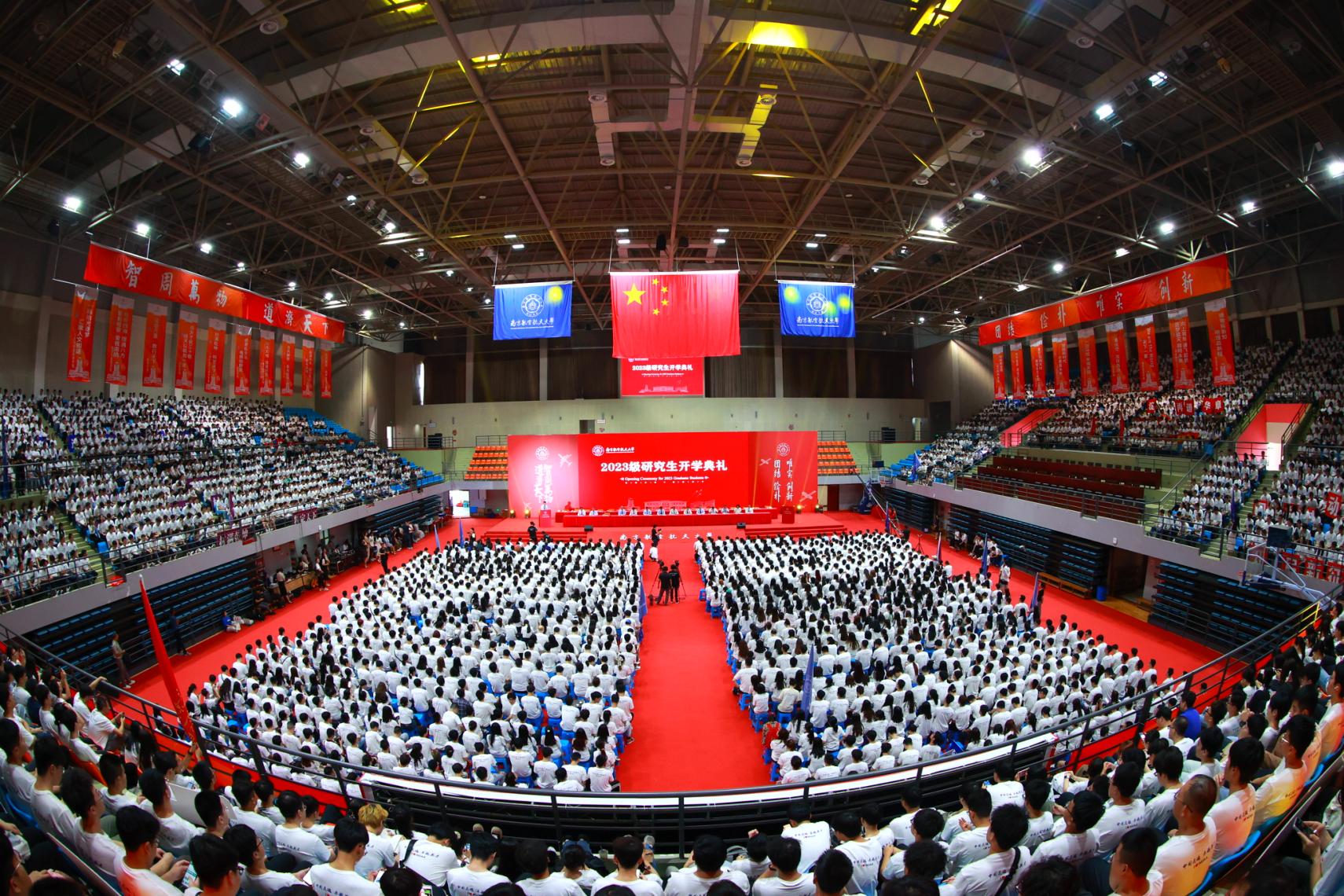 开学典礼在雄壮的国歌声中拉开帷幕,各学院领导向2023级研究生新生致欢迎辞。