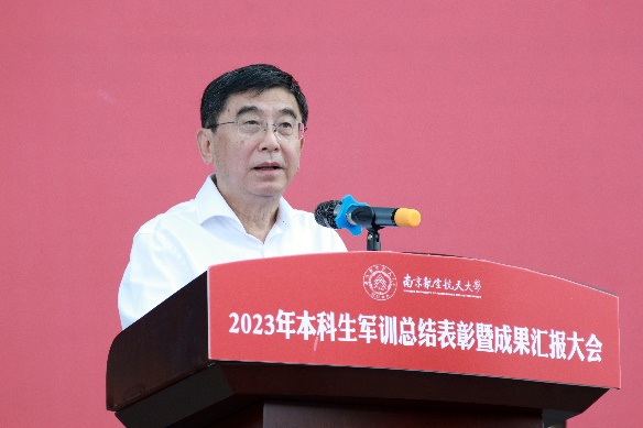 施大宁、刘宇雷分别在两校区发表讲话,他们代表学校向为军训付出辛勤汗水的全体教官表示了衷心感谢,向圆满完成军训任务的2023级本科生同学们表示了热烈祝贺。他们希望,同学们厚植航空报国的家国情怀,勇于在强国建设中挺膺担当;涵育攻坚克难的斗争精神,敢于在时代潮涌中奋楫争先;弘扬严慎细实的优良作风,勤于在青春淬炼中练就本领。