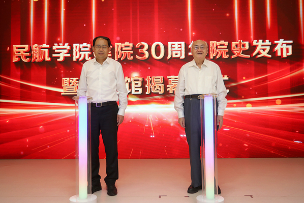 单忠德和朱剑英共同发布民航学院30周年院史,并为院史馆揭幕。