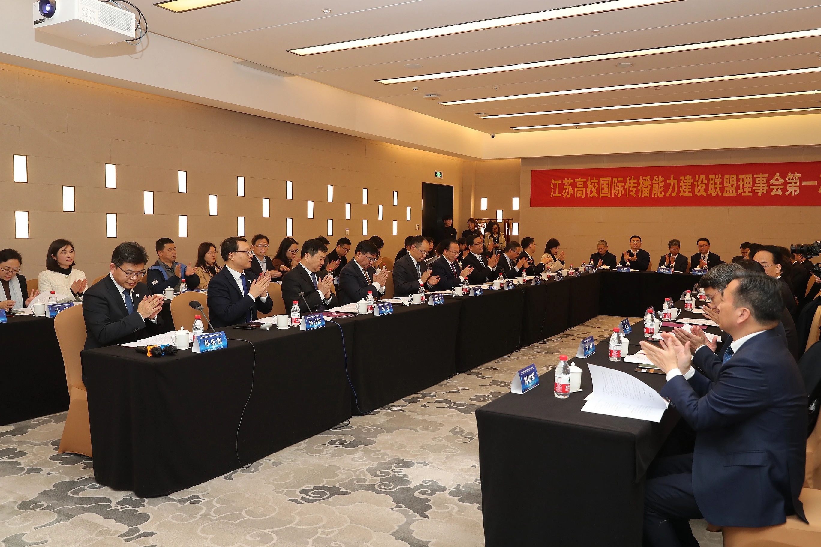 成立仪式后,江苏高校国际传播能力建设联盟理事会召开第一次会议。全体理事审议通过《江苏高校国际传播能力建设联盟章程》,并推举产生联盟理事会第一届理事长、副理事长、秘书长。13所创始成员高校有关负责同志当选为联盟副理事长。