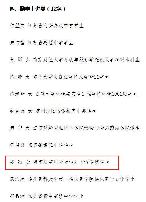近日,共青团江苏省委公布了2022年“我们身边的好青年”入选人员名单,经社会推荐、资格审查、网络展示和专家评审,共评选出六个类别100名江苏省好青年,外国语学院研究生钱颖从8000多名候选人中脱颖而出,荣获“勤学上进好青年”。