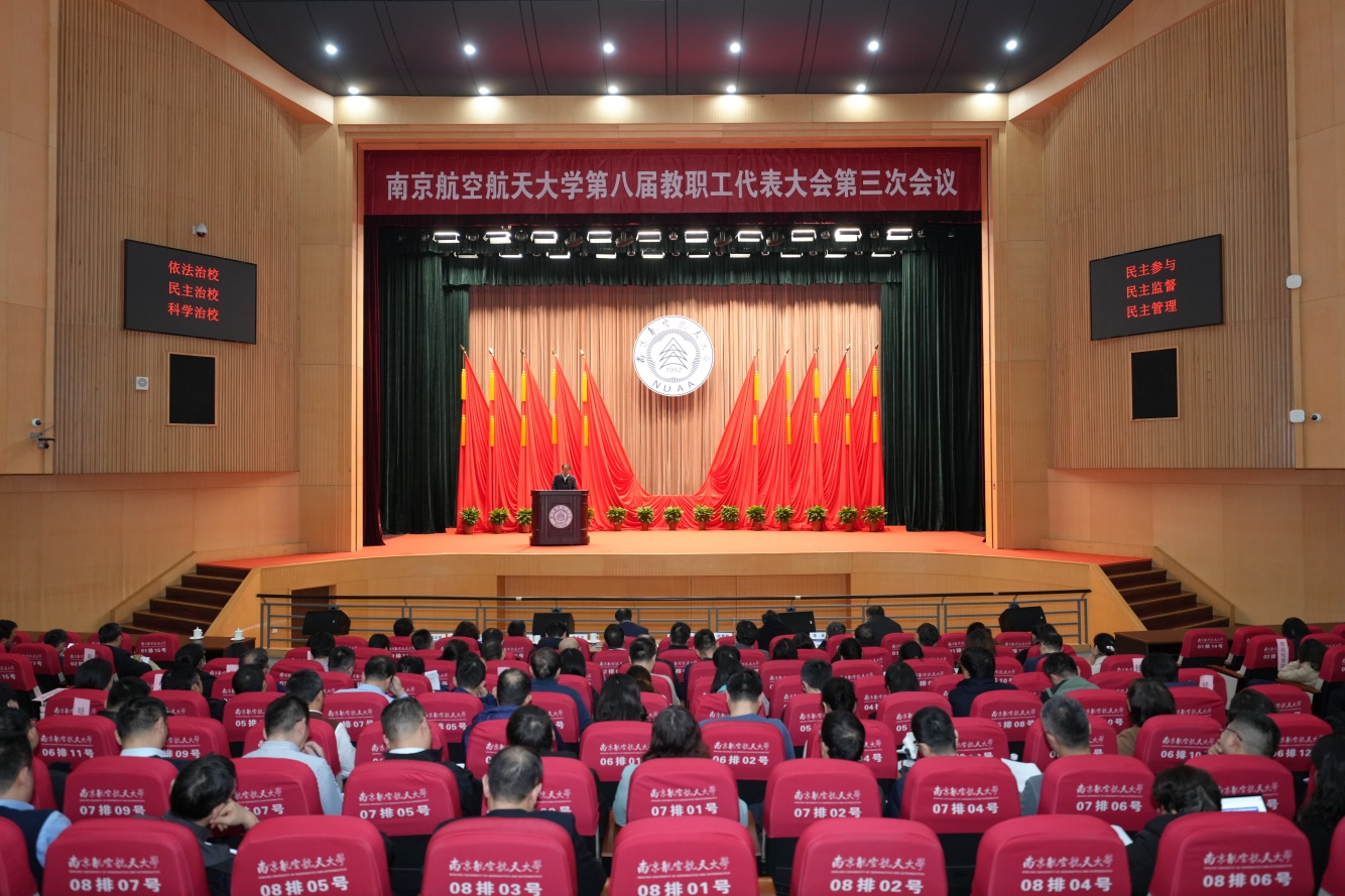 会上,校长姜斌代表学校作了题为《凝心聚力 共创未来 以改革创新汇聚学校高质量发展新动能》的工作报告。他指出,一年来学校持续深化党建领航、战略引领、人才培养、科技创新和全面开放的特色发展体系。新时代新征程,要全面学习贯彻党的二十大精神,以习近平总书记关于教育科技人才重要论述和致ac米兰重要勉励精神为根本遵循,以实干担当推动主题教育成果向办学治校成效转化,深入贯彻落实学校第十七次党代会决策部署,加快建设航空航天民航特色鲜明的世界一流大学。他指出,要坚持以习近平新时代中国特色社会主义思想为指导,全面学习贯彻党的二十大精神,进一步深刻领悟“两个确立”的决定性意义,坚决做到“两个维护”,落实好学校第十七次党代会决策部署,勇担国家战略科技力量和人才力量第一方阵的光荣使命,竭尽全力改革创新发展、全力以赴破解发展难题、用心用情服务广大师生,奋力推动学校高质量、系统性、国际化发展,为扎实推进新型工业化,助力强国建设、民族复兴作出新的更大贡献。