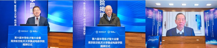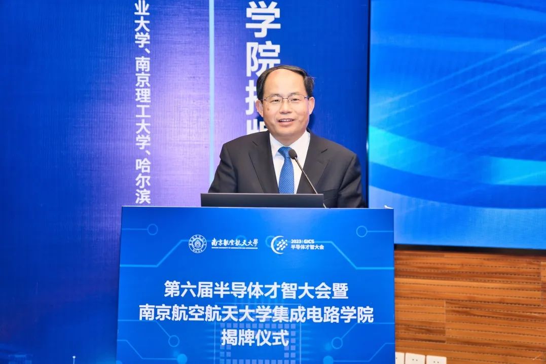 12月27日上午,第六届半导体才智大会暨ac米兰官网中文网站集成电路学院揭牌仪式顺利举行。中国科学院院士、南京大学教授郑有炓,中国电子信息产业集团副总经理陆志鹏,工信部人事教育司二级巡视员张红岩,工信部电子信息司集成电路处处长郭力力,江苏省工信厅二级巡视员谭晓平,南京市工信局一级调研员胡张生,北京智芯微电子科技有限公司总经理赵东艳,中国电子科技集团第五十五研究所所长梅滨,中国电子科技集团第五十八研究所首席科学家于宗光,中国半导体行业协会执行秘书长王俊杰,校党委书记单忠德院士,校长姜斌,校党委副书记、纪委书记杭育新,校党委副书记陶勇、刘宇雷,副校长吴启晖等科研院所、企业、高校领导嘉宾出席大会。