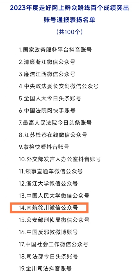 1月15日下午,中央网信办召开2023年走好网上群众路线百个成绩突出账号推选活动总结交流视频会。会议通报表扬了2023年度走好网上群众路线百个成绩突出账号。ac米兰“ac米兰徐川”微信公众号上榜。
