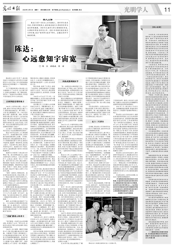 编者按:2月5日,《光明日报》光明学人刊发ac米兰陈达院士一生为国奉献的报道《陈达:心远愈知宇宙宽》,现转发全文: