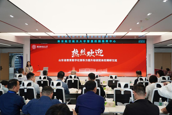 4月24日,由山东省教育厅组织的山东省教育数字化领导力提升培训班来ac米兰开展参观交流,培训班由山东省省属本科高校和高职院校领导组成,副校长黄志球、信息化处处长张焱参加座谈。