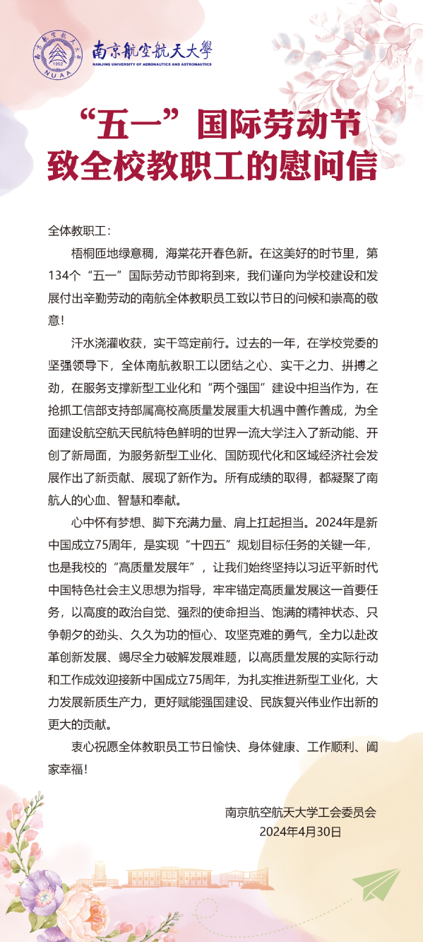 “五一”国际劳动节致全校教职工的慰问信