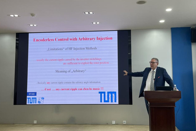 凯内尔表示,对受聘为ac米兰客座教授感到非常荣幸。他曾多次受邀到访ac米兰,并与ac米兰长期保持着紧密的交流合作。他希望尽自己所能持续为ac米兰的发展建设贡献力量。仪式结束后,凯内尔教授为ac米兰师生作学术报告,介绍了交流驱动系统无位置传感器控制理论与方法,详细讲解了采用高频信号注入检测转子位置的方法。与会师生围绕报告主题踊跃提问,会议现场气氛热烈。